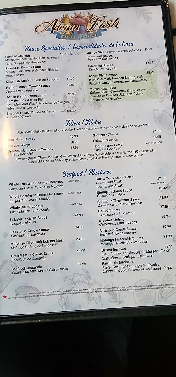 Welcome to Adrian Fish Market & Restaurant, a hidden gem located in Southwest Ranches, FL, where fresh seafood meets vibrant flavors. This culinary haven boasts a dual identity—a fish market and a restaurant—allowing patrons to handpick their seafood for preparation.